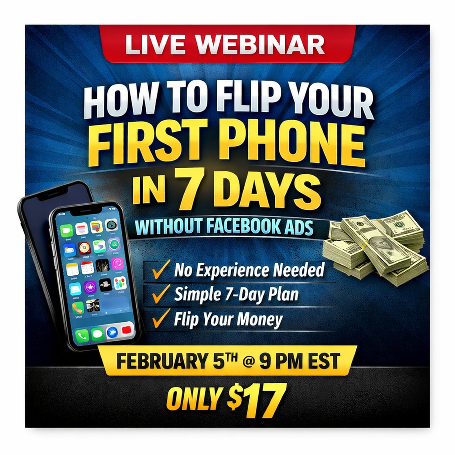 This live webinar shows beginners how to flip their first phone for profit without Facebook ads, a store, or complicated setups.